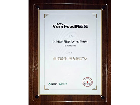 近日,在食研汇FTA主办的“2024 Very Food 创新奖”颁奖典礼上,健康产业公司旗下国珍牌瑙洛清®配方油荣获2024年度最佳“潜力新品”奖。