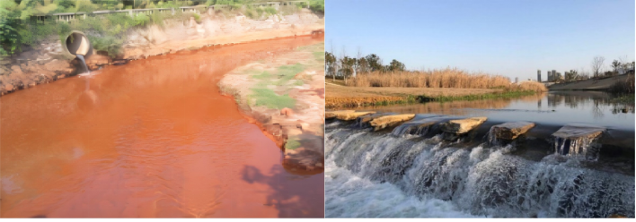 左1凤凰河治理前 右1凤凰河治理后