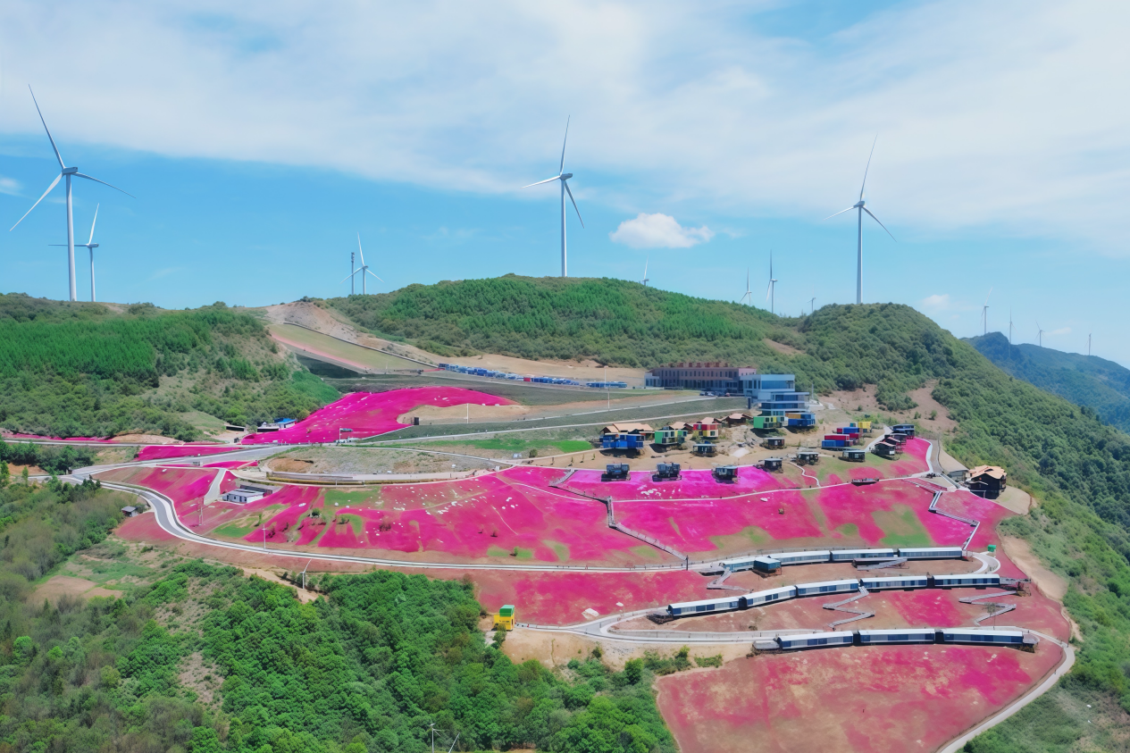 在守护绿水青山的同时,中节能风电更致力于创造金山银山,创新性地探索“风电+旅游”模式,让洁白的风车与当地生态文旅产业擦出了绚烂的火花。特别是北风垭96兆瓦风电项目,当初修通的道路,如今成了游客寻幽探秘的“生态步道”;巍然屹立的风机,与壮美云海、烂漫山花、特色民宿共同构成了一幅动人的“华中屋脊”生态画卷,每年吸引数十万游客前来感受“手可摘星辰”的奇幻,体验高山滑雪的激情,带动了当地“风电+生态旅游”融合的低碳经济新路径蓬勃兴起。
