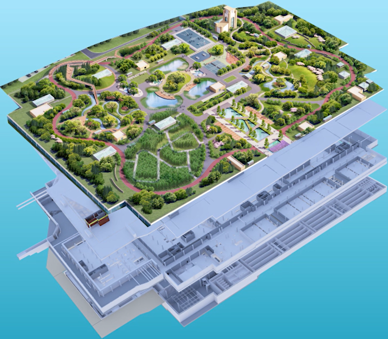 地下箱体采用全密闭式设计,配套全套臭气收集与生物除臭系统,并选用低噪音设备,从源头上杜绝了异味与噪声污染,彻底破解了环保项目“邻避效应”的行业痛点。地上生态公园铺设大面积绿化植被,构建起完整的水循环生态系统,既为周边居民提供了健身休憩的绿色空间,更实现了污水处理设施与城市生态的和谐共生。
